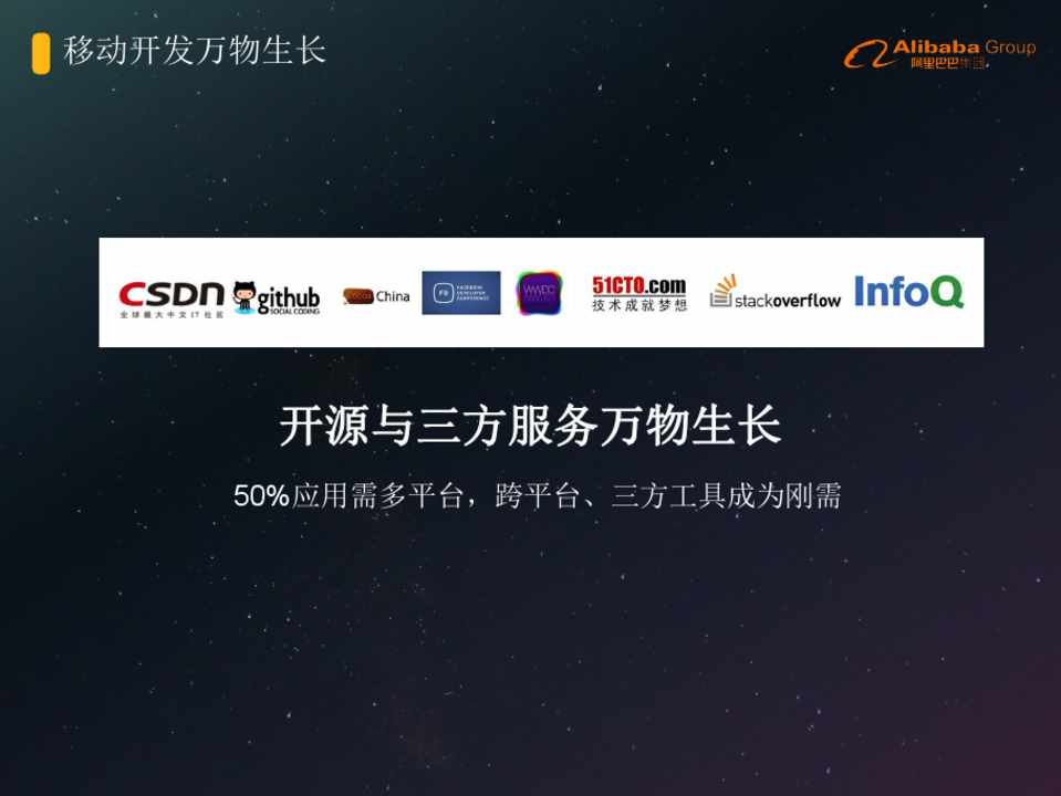 阿里百川(baichuan.taobao.com) 是阿里巴巴集团无线开放平台,通过 “技术、商业及大数据”的开放,提供 移动场景下的高内聚、开放式、行业 领先的技术产品矩阵、成熟的商业组 件和完善的服务体系,帮助移动开发 者快速搭建APP、加速APP商业化进 程,全方位赋能移动开发者及移动创 业者。