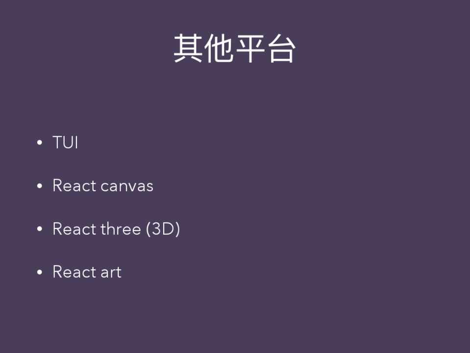 • TUI • React canvas • React three (3D) • React art