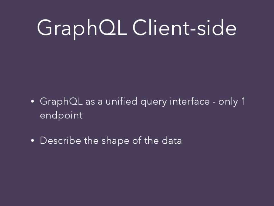 • GraphQL as a unified query interface - only 1 endpoint