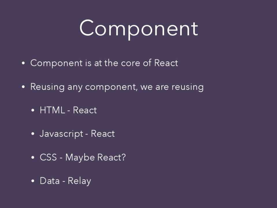 • Component is at the core of React • Reusing any component, we are reusing
