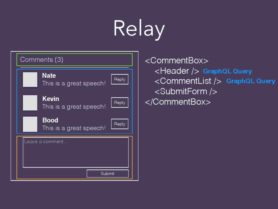 <CommentBox> <Header /> GraphQL Query <CommentList /> GraphQL Query <SubmitForm />