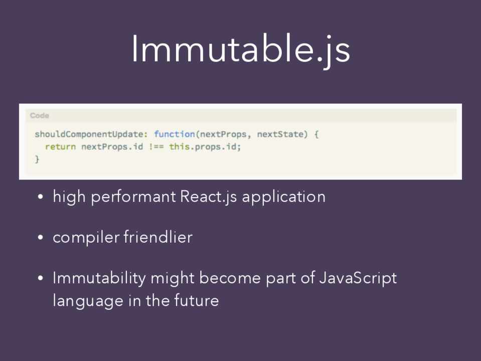• high performant React.js application • compiler friendlier • Immutability might become part of JavaScript