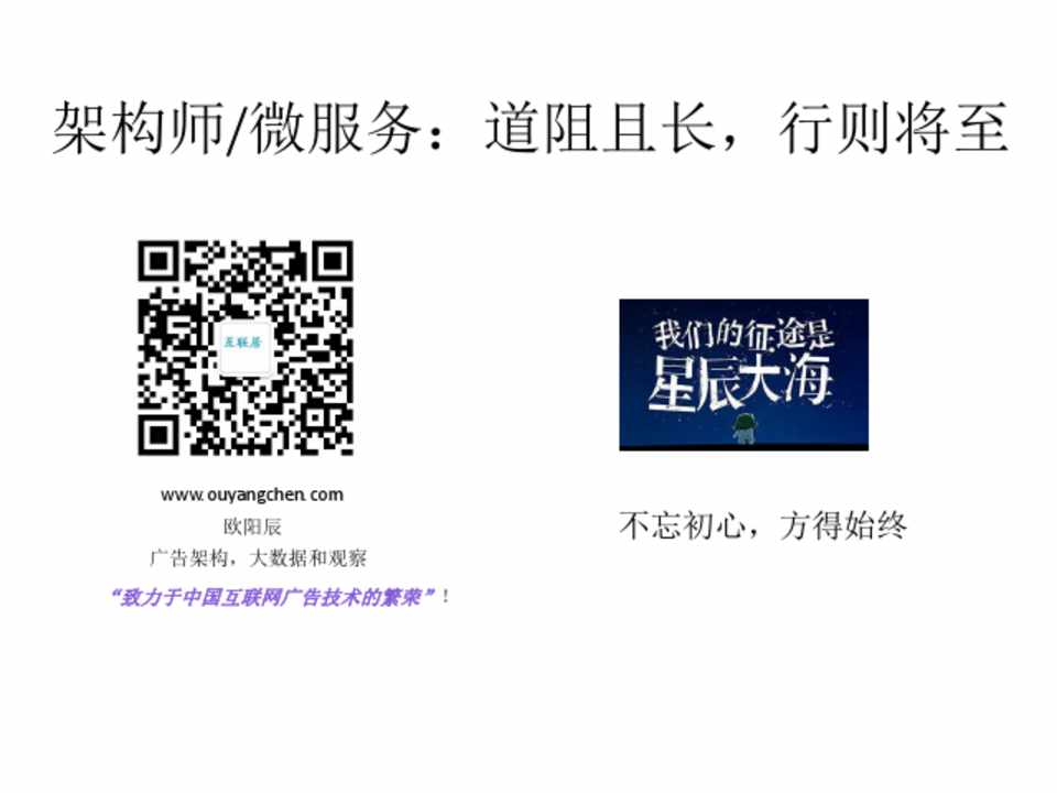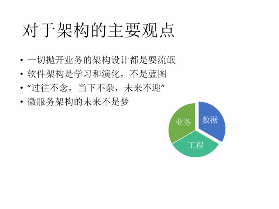 • 一切抛开业务的架构设计都是耍流氓 • 软件架构是学习和演化,不是蓝图 • “过往不念,当下不杂,未来不迎” • 微服务架构的未来不是梦