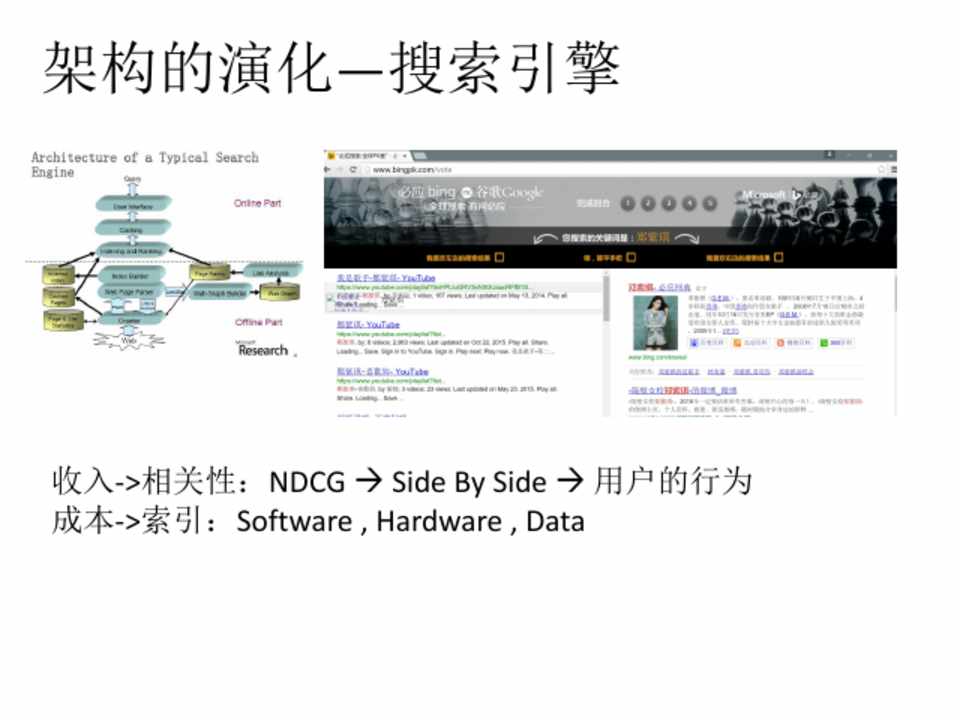收入->相关性:NDCG Side By Side 用户的行为 成本->索引:Software , Hardware , Data