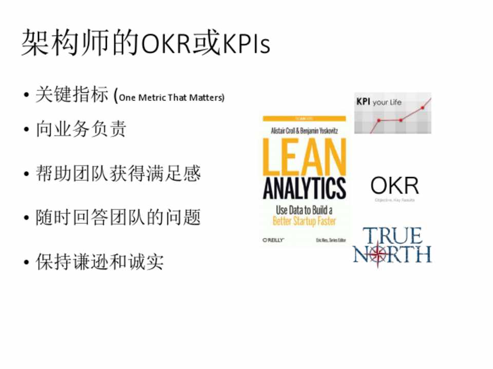 • 关键指标 (One Metric That Matters) • 向业务负责 • 帮助团队获得满足感 • 随时回答团队的问题 • 保持谦逊和诚实
