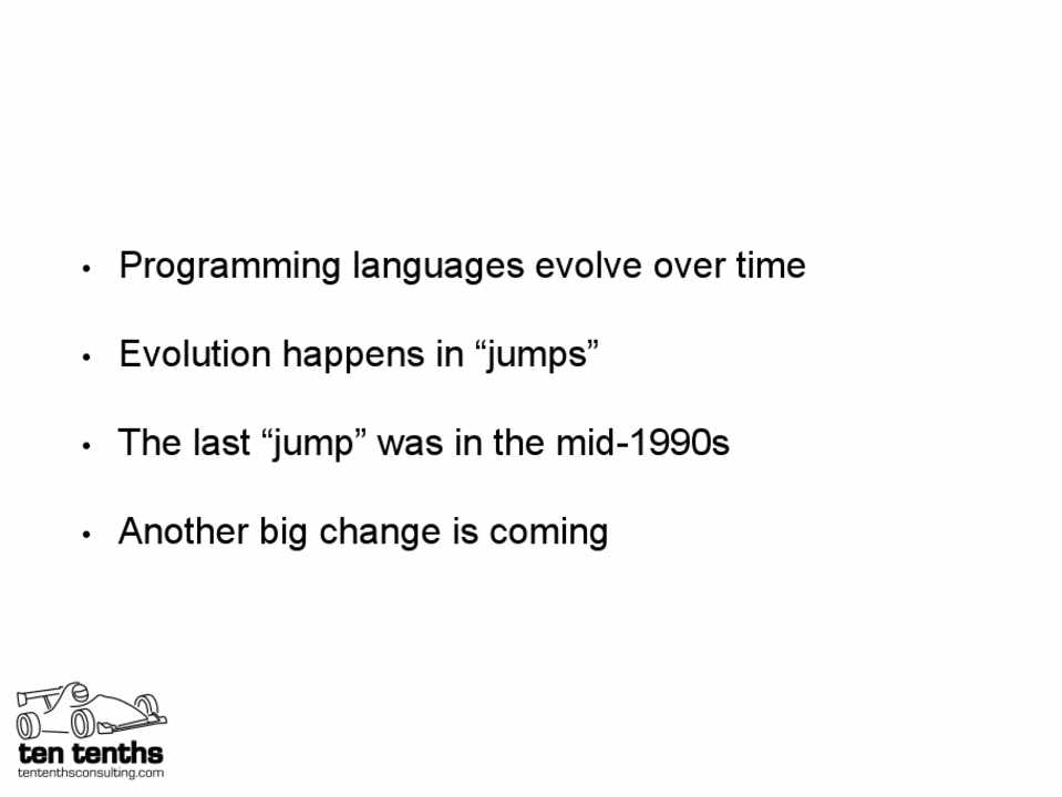 • Programming languages evolve over time • Evolution happens in “jumps” • The last “jump” was in the mid-1990s • Another big change is coming