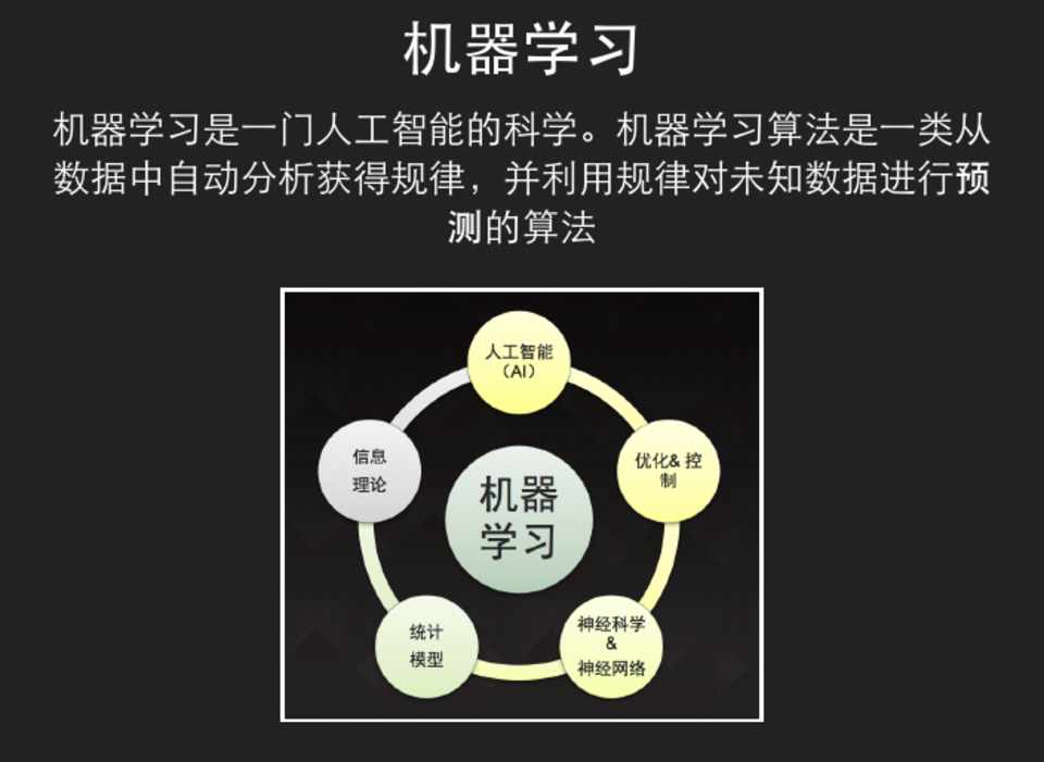 机器学习是一门人工智能的科学。机器学习算法是一类从 数据中自动分析获得规律,并利用规律对未知数据进行预