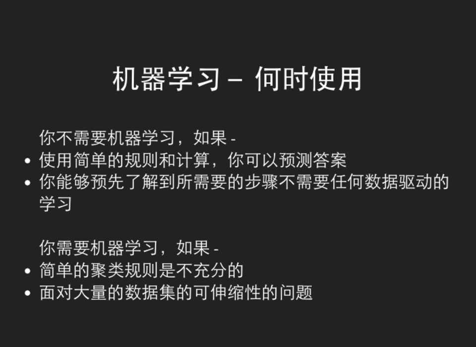 你不需要机器学习,如果 使用简单的规则和计算,你可以预测答案 你能够预先了解到所需要的步骤不需要任何数据驱动的 学习