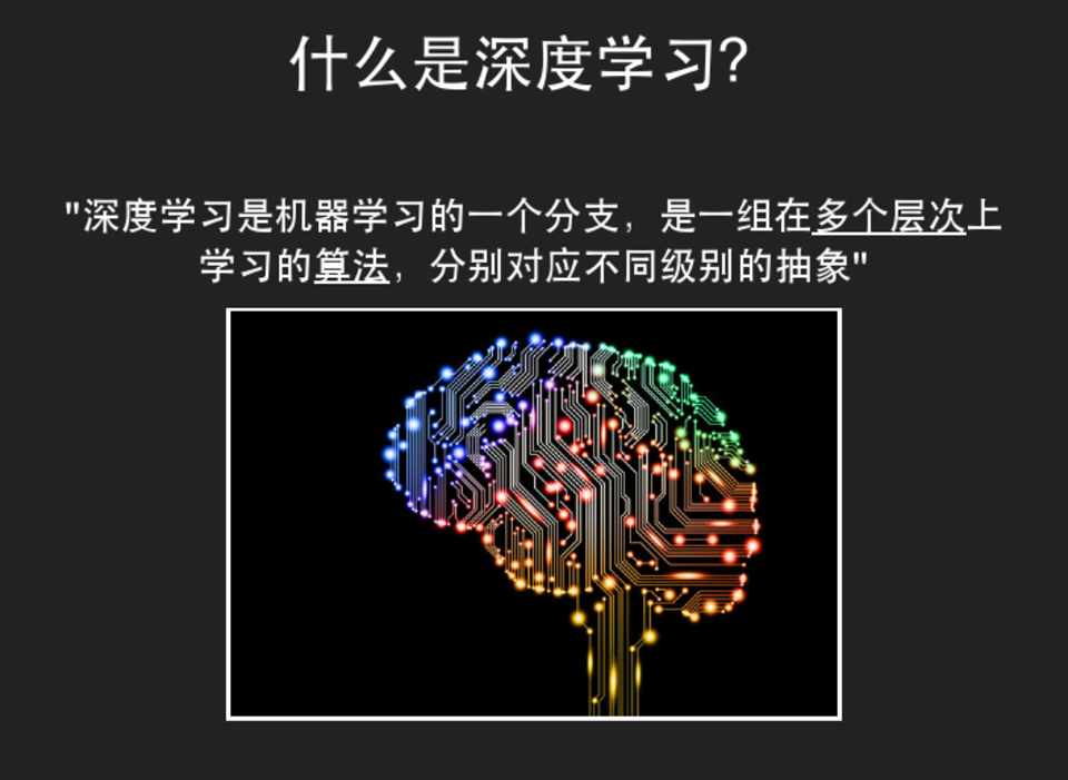 "深度学习是机器学习的一个分支,是一组在多个层次上 学习的算法,分别对应不同级别的抽象"