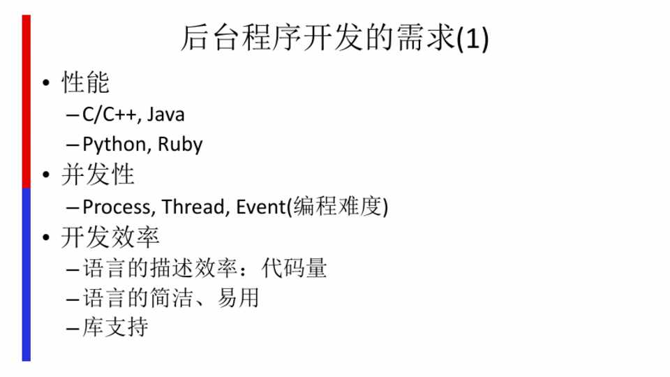 – 语言的描述效率:代码量 – 语言的简洁、易用 – 库支持