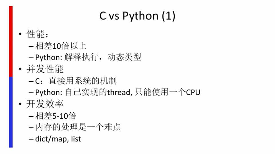 – 相差10倍以上 – Python: 解释执行,动态类型
