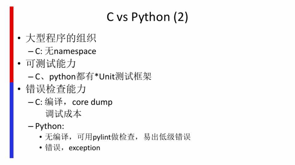 • 无编译,可用pylint做检查,易出低级错误 • 错误,exception