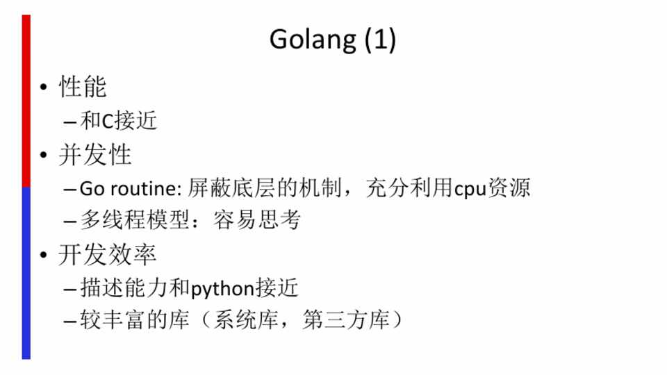 – Go routine: 屏蔽底层的机制,充分利用cpu资源 – 多线程模型:容易思考