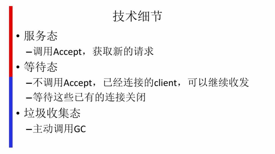 –不调用Accept,已经连接的client,可以继续收发 –等待这些已有的连接关闭