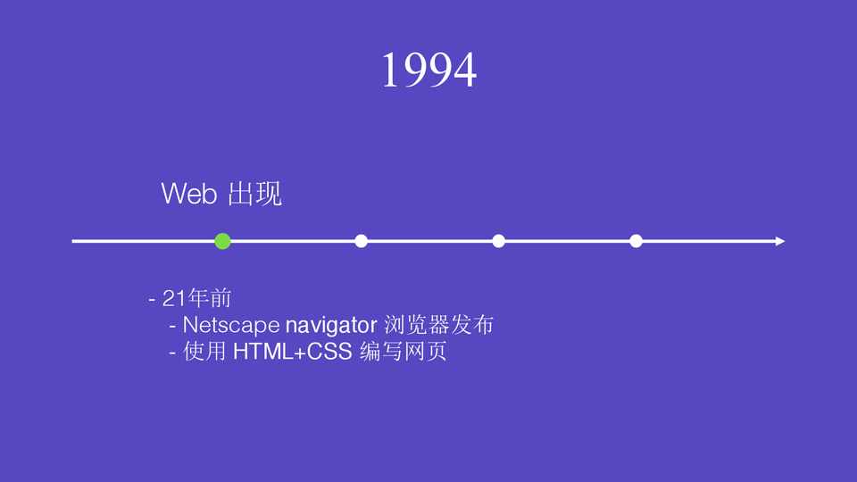 - 21年前 - Netscape navigator 浏览器发布 - 使用 HTML+CSS 编写网页
