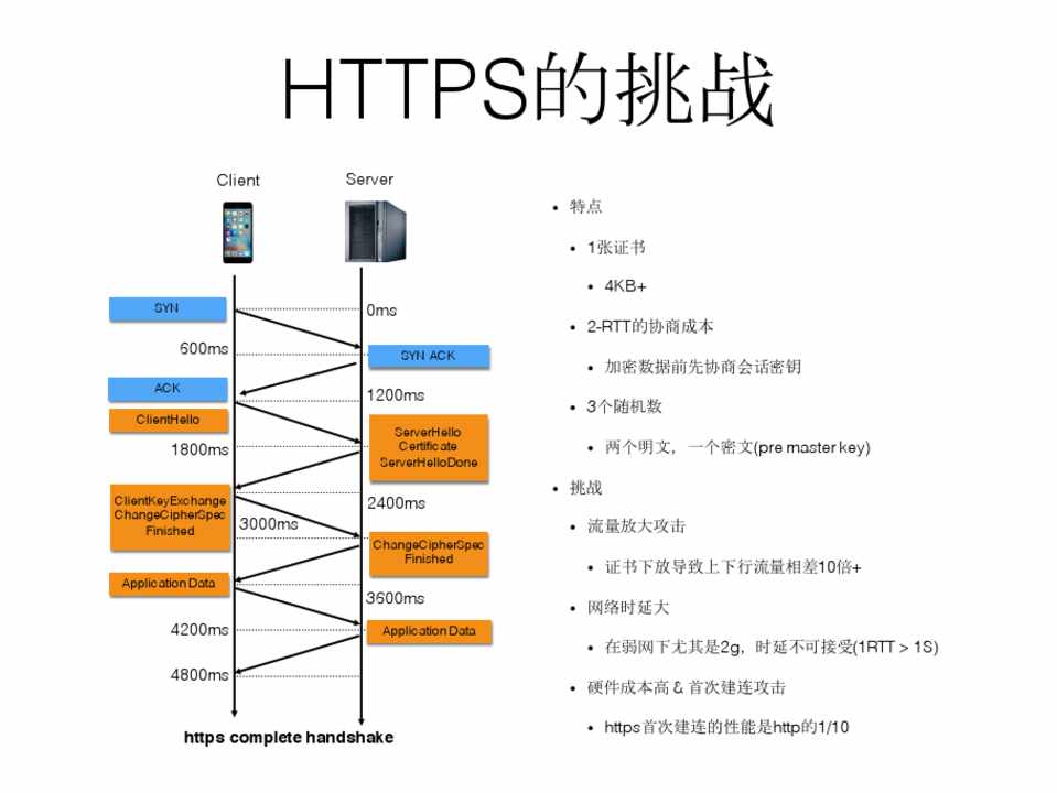 • 挑战 • 流量放大攻击 • 证书下放导致上下行流量相差10倍+ • 网络时延大 • 在弱网下尤其是2g,时延不可接受(1RTT > 1S) • 硬件成本高 & 首次建连攻击 • https首次建连的性能是http的1/10