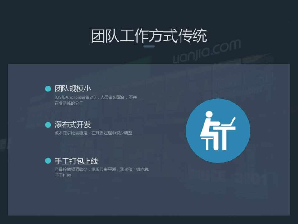 产品投放渠道较少,发版节奏平缓,测试和上线均靠 手工打包