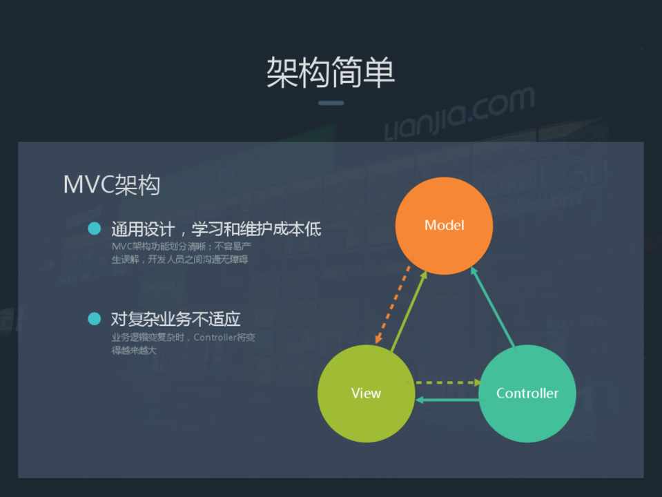 MVC架构功能划分清晰;不容易产 生误解,开发人员之间沟通无障碍