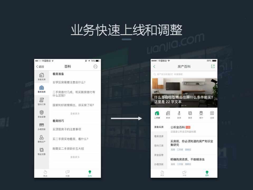 由单一二手房买卖业务增加到新房、租房、百科、问答 等业务群,且热点、百科等内容型业务的具体形态多变