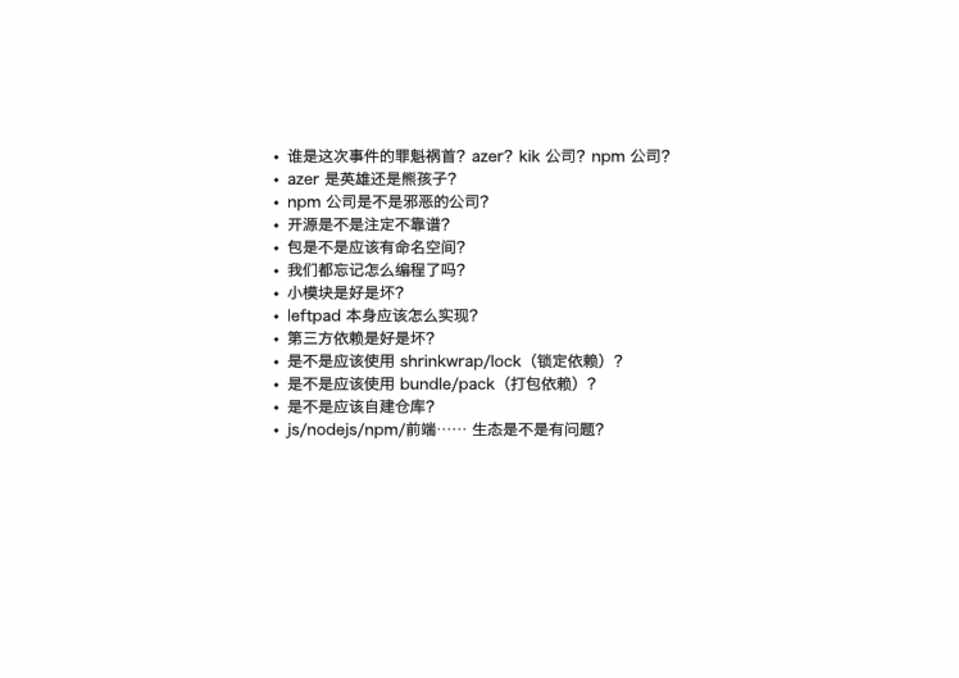 如何看待 left-pad事件-小模块是好是坏-开源是否不靠谱 by 贺师俊