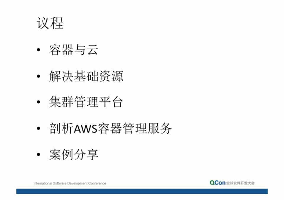 • 容器与云 • 解决基础资源 • 集群管理平台 • 剖析AWS容器管理服务 • 案例分享