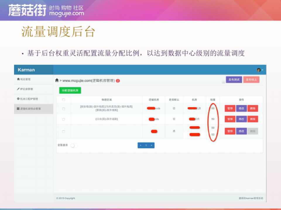 • 基于后台权重灵活配置流量分配比例,以达到数据中心级别的流量调度