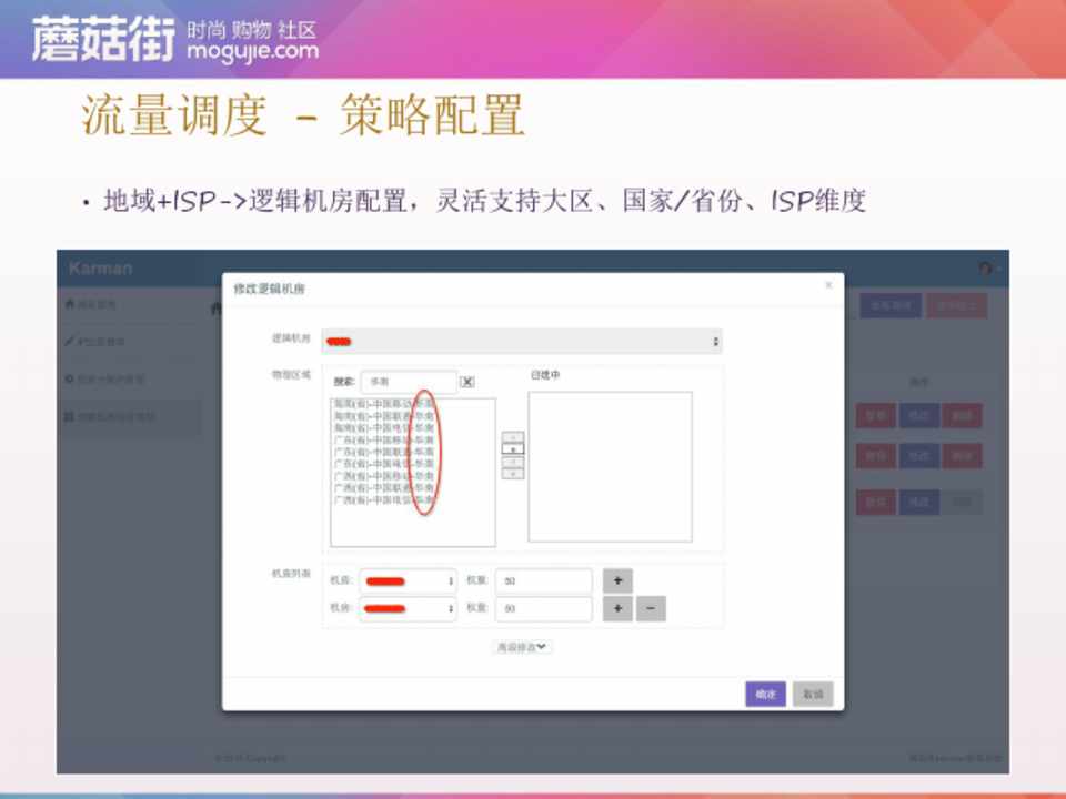 • 地域+ISP->逻辑机房配置,灵活支持大区、国家/省份、ISP维度