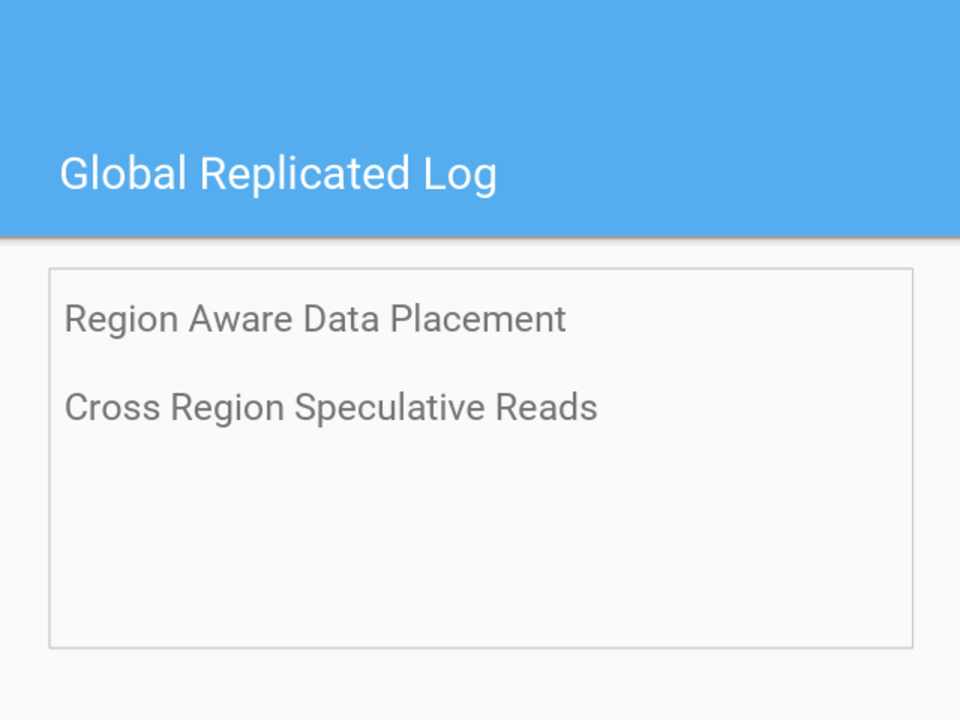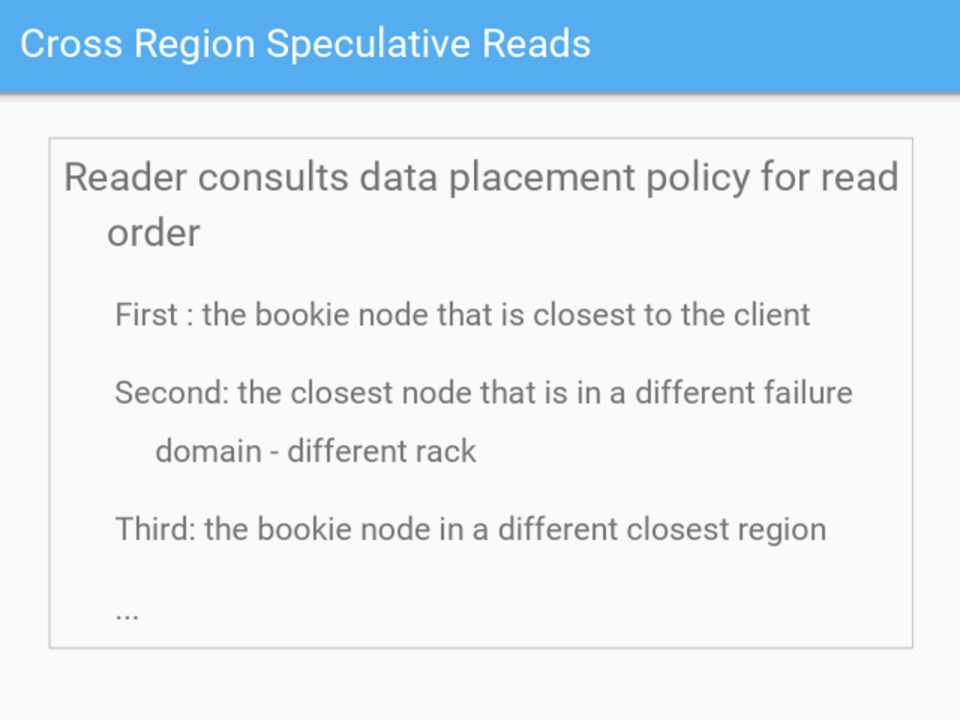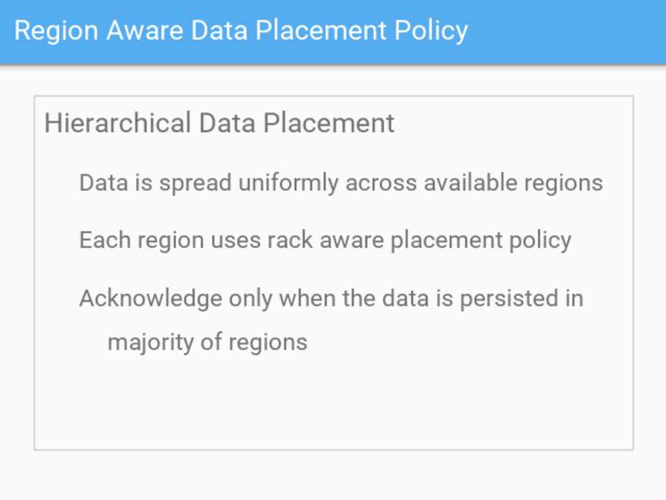 Data is spread uniformly across available regions Each region uses rack aware placement policy Acknowledge only when the data is persisted in