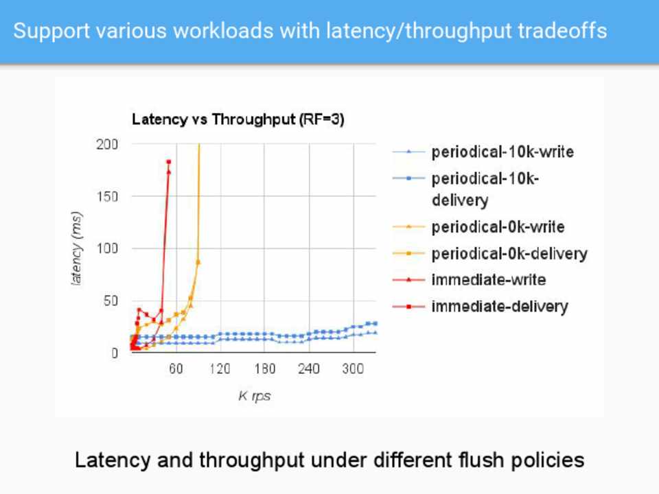 Support various workloads with latency/throughput tradeoffs Latency and throughput under different flush policies