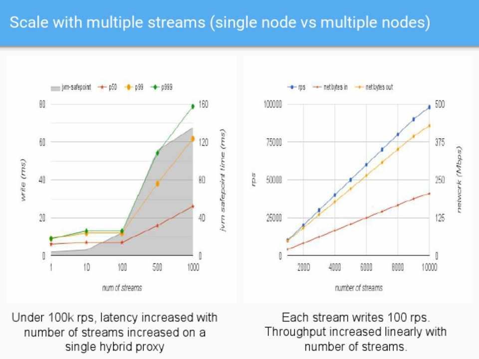 Under 100k rps, latency increased with number of streams increased on a single hybrid proxy
