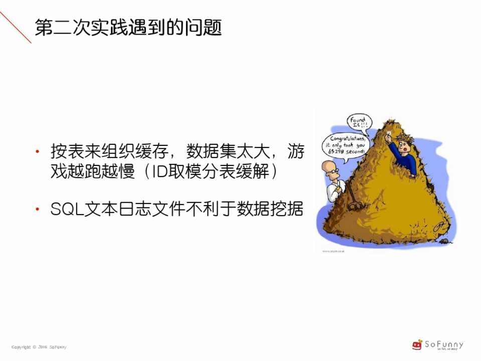 • 按表来组织缓存,数据集太大,游 戏越跑越慢(ID取模分表缓解)