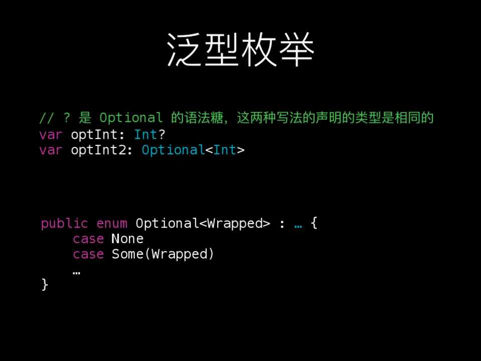// ? Optional var optInt: Int? var optInt2: Optional<Int>