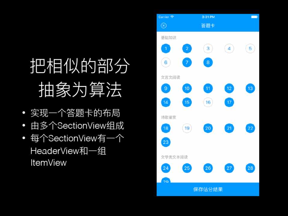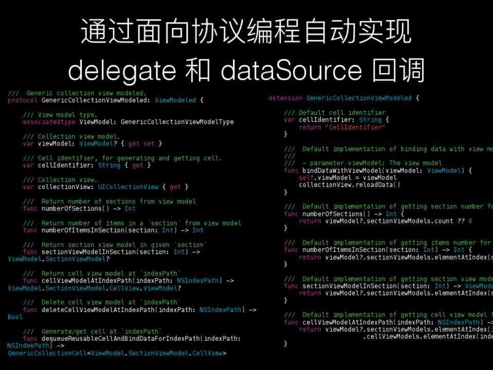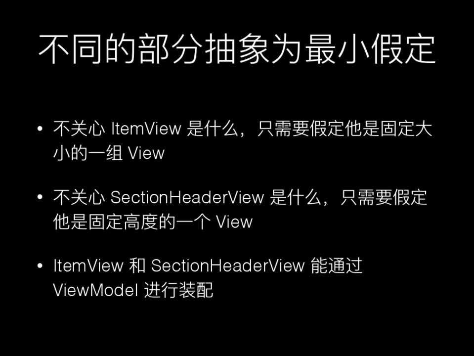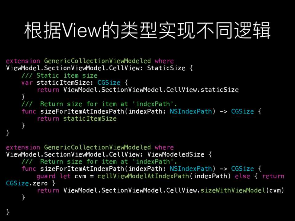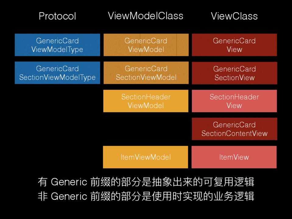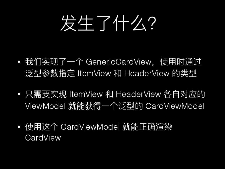 let text: String let textColor: UIColor let image: UIImage } func bindDataWithViewModel(viewModel: ViewModel) { label.text = viewModel.text label.textColor = viewModel.textColor imageView.image = viewModel.image } …… } final class DemoCardChapterView: LabelWrapper, CreatableViewModeled, StaticHeight { …… }