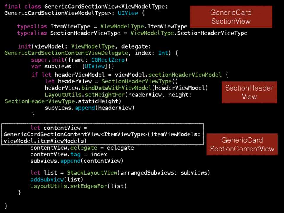GenericCardSectionView<ViewModelType.SectionViewModelType>(viewModel: svm, delegate: self, index: index)