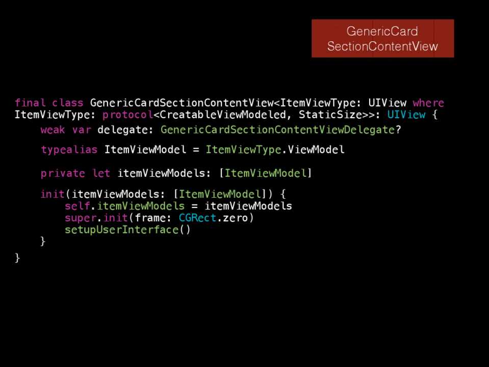 final class GenericCardSectionContentView<ItemViewType: UIView where ItemViewType: protocol<CreatableViewModeled, StaticSize>>: UIView {