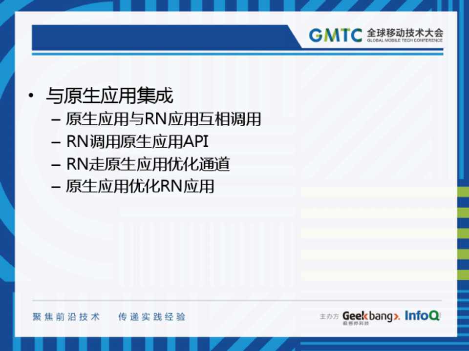 – 原生应用与RN应用互相调用 – RN调用原生应用API – RN走原生应用优化通道 – 原生应用优化RN应用