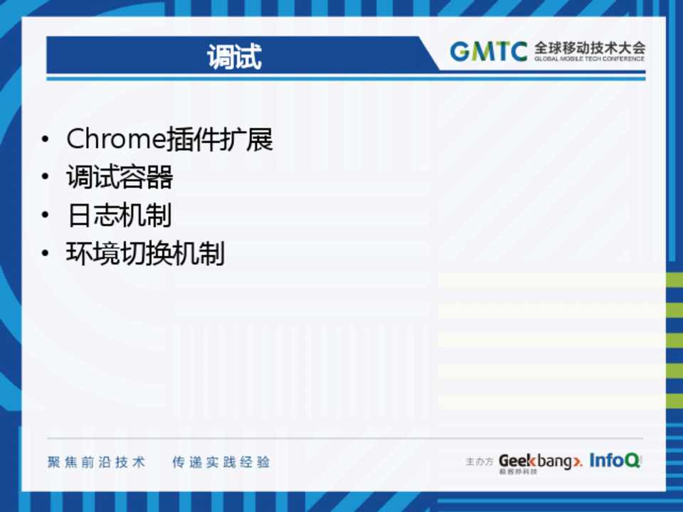 • Chrome插件扩展 • 调试容器 • 日志机制 • 环境切换机制