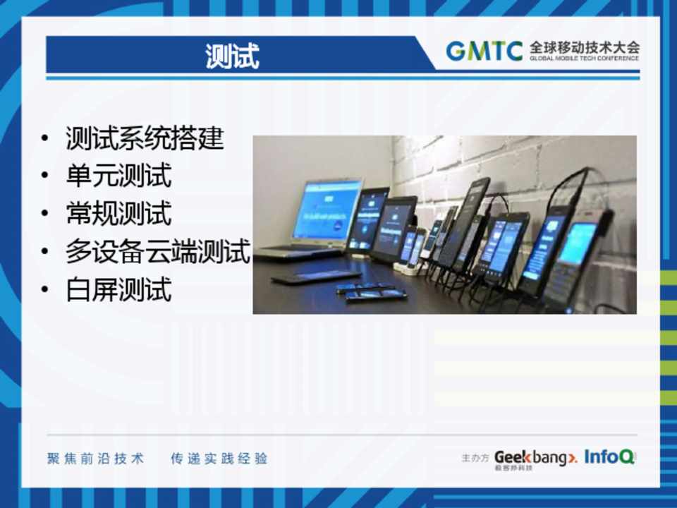 • 测试系统搭建 • 单元测试 • 常规测试 • 多设备云端测试 • 白屏测试