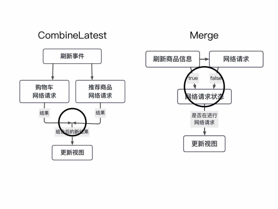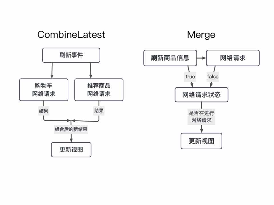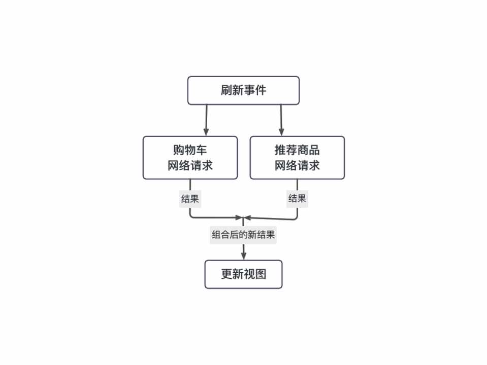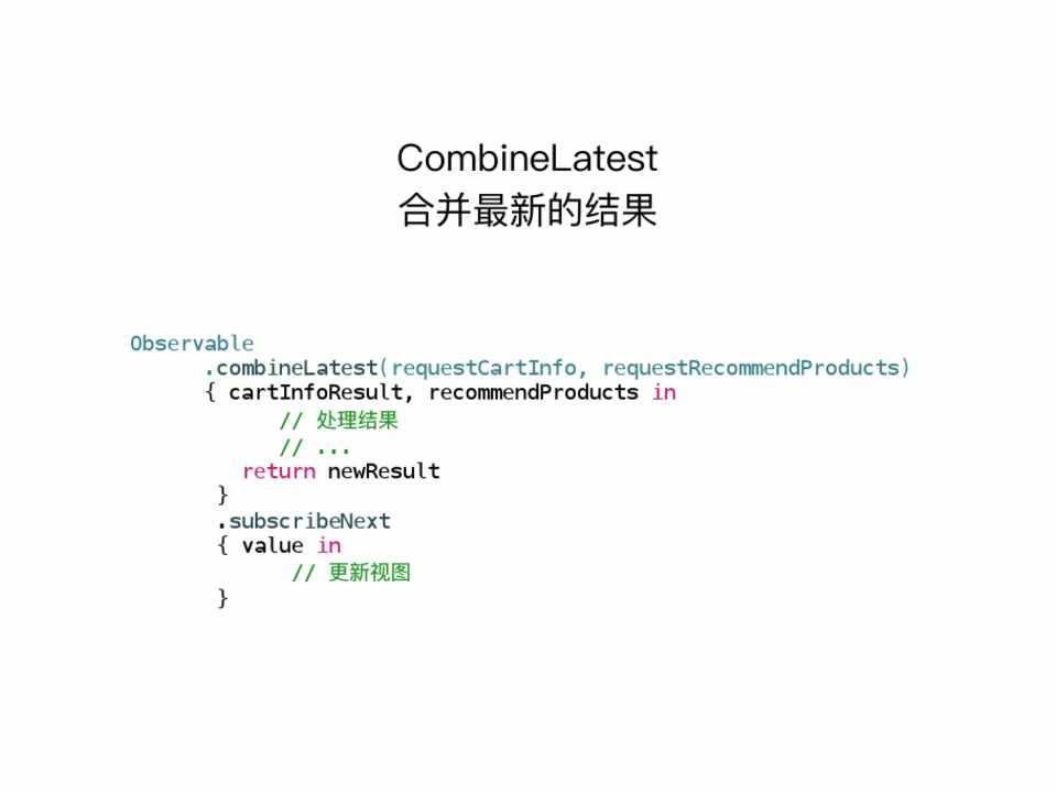 Observable .combineLatest(requestCartInfo, requestRecommendProducts) { cartInfoResult, recommendProducts in