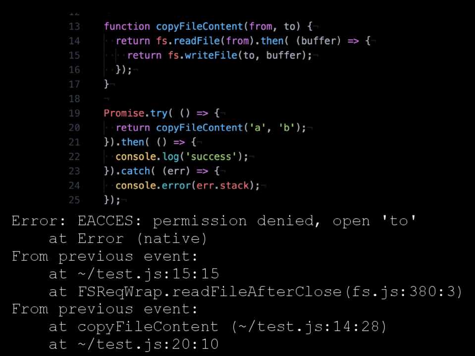 From previous event: at copyFileContent (~/test.js:14:28) at ~/test.js:20:10