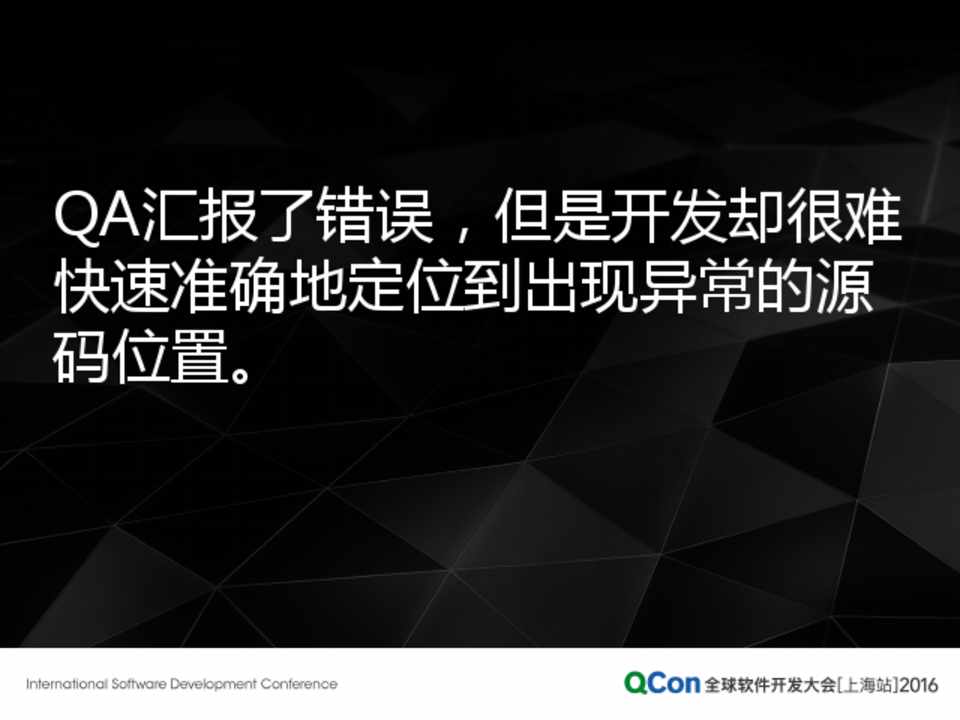 QA汇报了错误,但是开发却很难 快速准确地定位到出现异常的源 码位置。