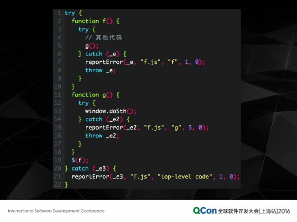 1. 以function为单位的代码埋点,定位的⾏列信息与实际异常抛 出的准确位置稍有偏差