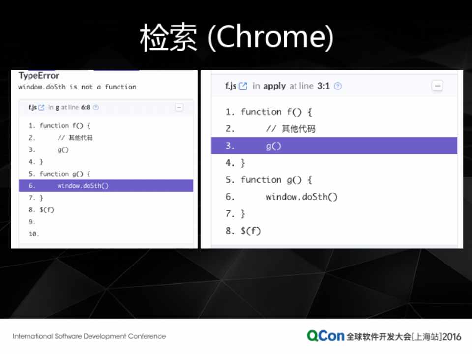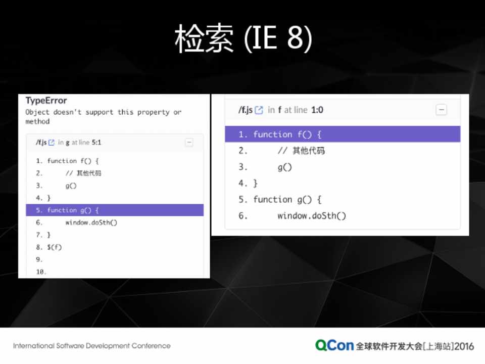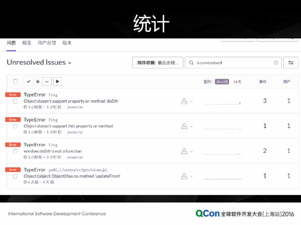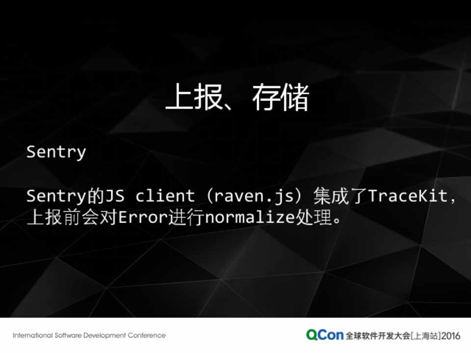 Sentry Sentry的JSclient(raven.js)集成了TraceKit, 上报前会对Error进⾏normalize处理。