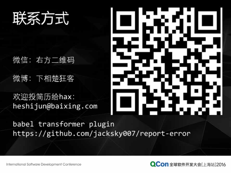微信:右⽅⼆维码 微博:下相楚狂客 欢迎投简历给hax: heshijun@baixing.com babeltransformerplugin https://github.com/jacksky007/report-error