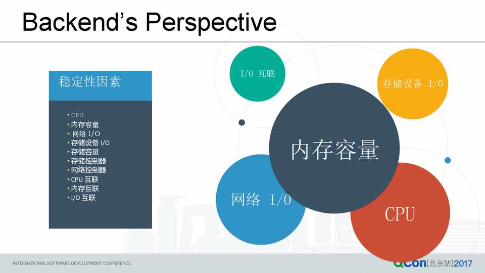 • CPU • 内存容量 • 网络 I/O • 存储设备 I/O • 存储容量 • 存储控制器 • 网络控制器 • CPU 互联 • 内存互联 • I/O 互联