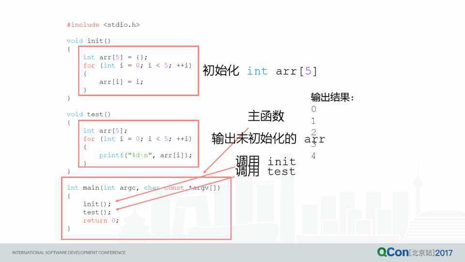 int arr[5] = {}; for (int i = 0; i < 5; ++i) {